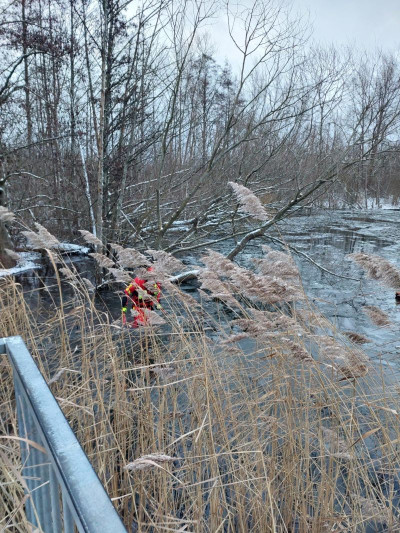 Absuchen des Uferbereichs der alten Tongrube sowie der Umgebung durch unsere Strömungsrettereinheit.