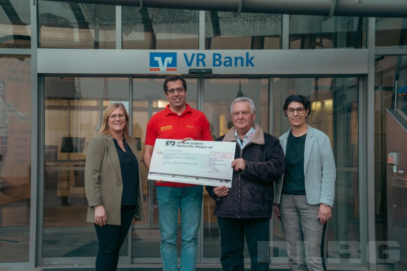 Anlässlich des Weltspartags 2025 hat die VR Bank Südliche Weinstraße-Wasgau eG den Ortsgruppen Landau und Dahn der Deutschen Lebens-Rettungs-Gesellschaften (DLRG) eine Spende in Höhe von insgesamt 1.500 Euro übergeben. In den drei großen Filialen in Bad Bergzabern, Dahn und Herxheim wurden Besucherinnen und Besucher am Weltspartag auf die Bedeutung des Schwimmens aufmerksam gemacht, der Tag stand unter dem Motto: „Schwimmen macht Spaß".